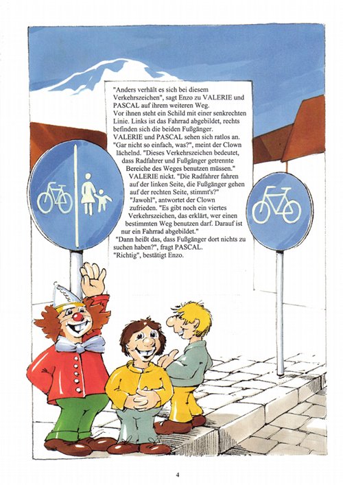 Hier nun eine Textseite des Kinderbuches 'Sicher im Strassenverkehr', wie sie im fertigen Buch aussieht. Der Name des beschenkten Kindes lautet Valerie, ihr Spielkamerad heißt Pascal.