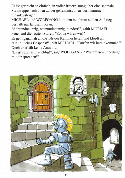 "Hallo, liebes Gespenst! ", ruft MICHAEL. "Dürfen wir hereinkommen?"